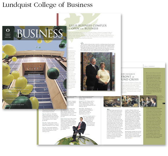 Design and layout for University of Oregon Business Magazine