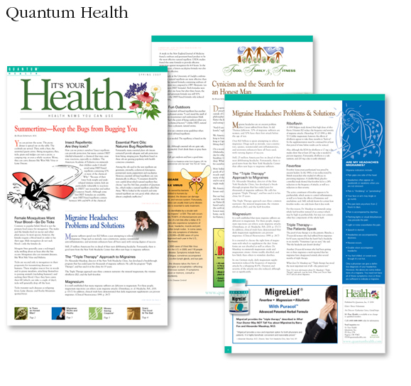 Design and layout of Quantum Health’s newsletter, It’s Your Health