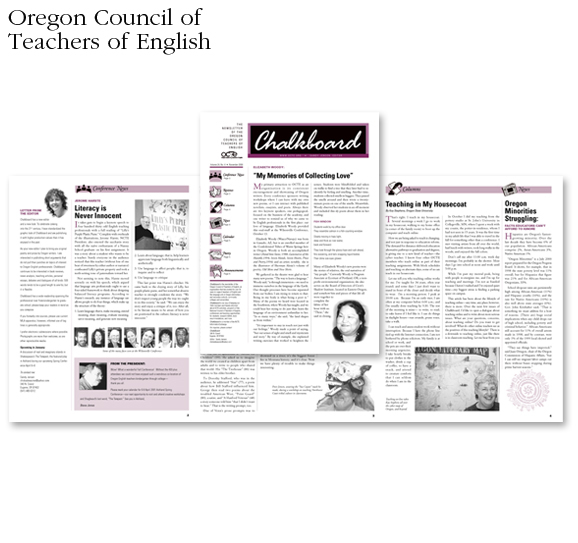 Design and layout of the newsletter Chalkboard, for the Oregon Council of Teachers of English (OCTE)
